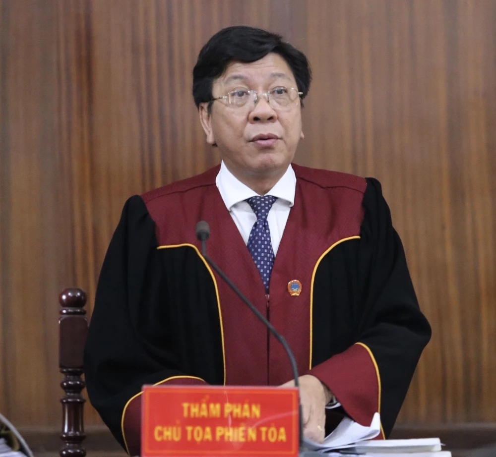 Chủ toạ phiên tòa, thẩm phán Phạm Lương Toản, Chánh tòa Hình sự TAND TP.HCM. Ảnh: HOÀNG YẾN