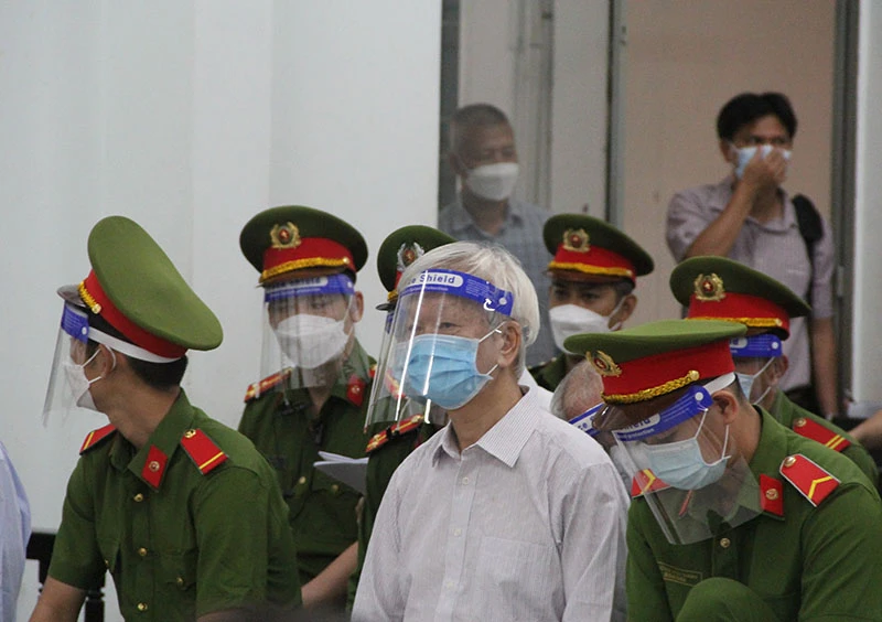 Các bị cáo nghe VKSND tỉnh Khánh Hòa công bố cáo trạng. Ảnh: TẤN LỘC