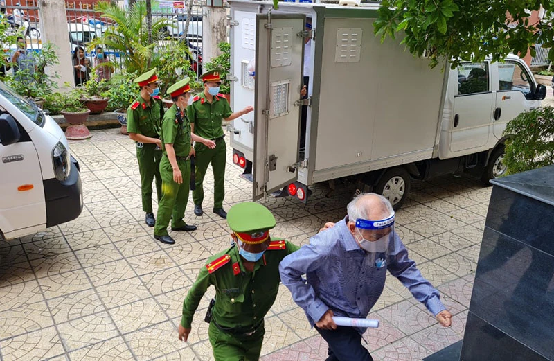 Dẫn giải bị cáo Đào Công Thiên, cựu Phó Chủ tịch UBND tỉnh Khánh Hòa đến tòa. Ảnh: LÊ HIỀN