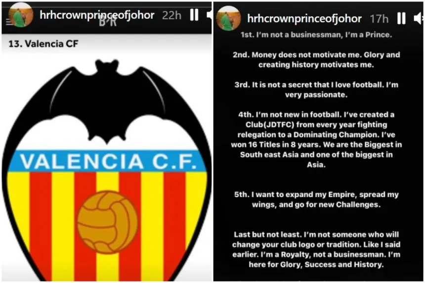 Cuộc “chat” qua điện thoại giữa chủ nhân CLB Valencia thuộc La Liga của tỉ phú Peter Lim, người Singapore và Hoàng tử Ismail, cựu Chủ tịch LĐBĐ Malaysia (FAM) chủ nhân CLB Johor Darul Tazim (JDT) của Malaysia đã được báo chí hai quốc này mổ xẻ và đồn đoán...vô tận.