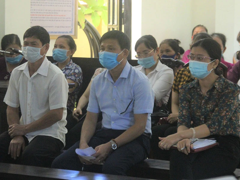 Cựu chủ tịch phường Vũ Đức Cường (thứ hai từ phải qua) tại tòa. Ảnh: TP