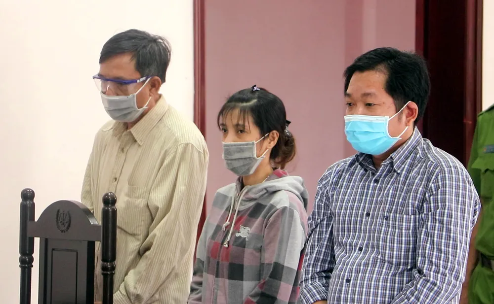 Từ phải qua, các bị cáo Tập, Loan, Hồng tại phiên xét xử sơ thẩm lần hai. Ảnh: CHÂU ANH