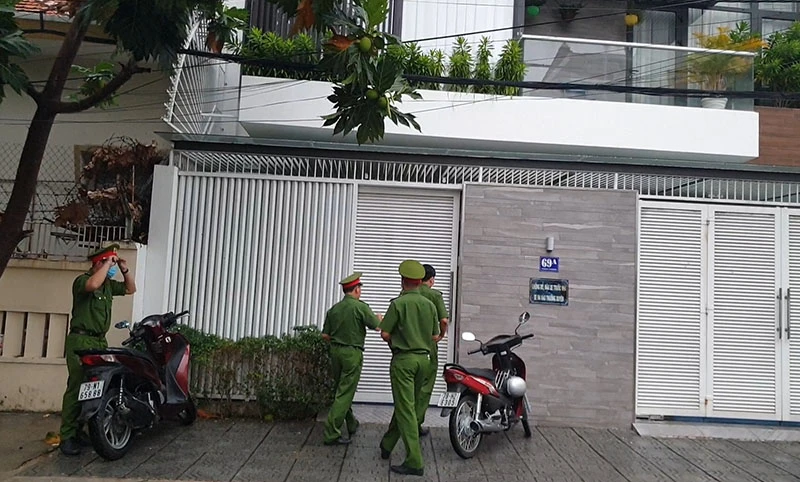 Lực lượng chức năng vào khám xét chỗ ở ông Nguyễn Chiến Thắng. Ảnh: K.VY