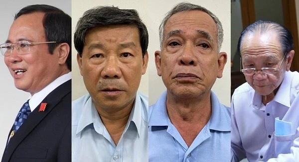 Từ trái qua: Các bị can Trần Văn Nam, Trần Thanh Liêm, Phạm Văn Cành và Nguyễn Văn Minh. Ảnh: LA