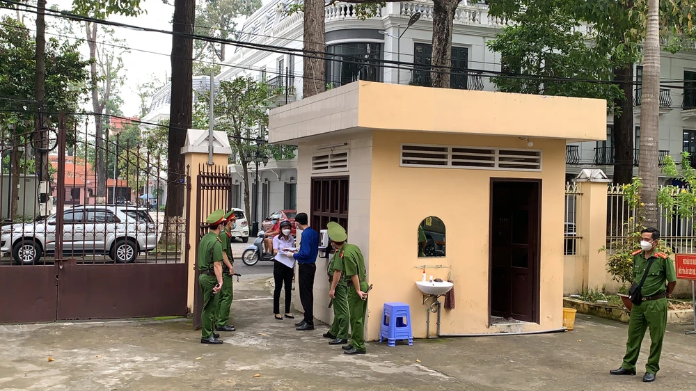 Do tình hình dịch COVID-19 diễn biến phức tạp nên các biện pháp đảm bảo phòng chống dịch tại tòa cũng được thực hiện rất nghiêm ngặt. Theo đó, trước khi vào cổng tòa, những người liên quan phải tiến hành khai báo y tế bằng cách quét mã QR. An ninh khu vực tòa cũng được thắt chặt.