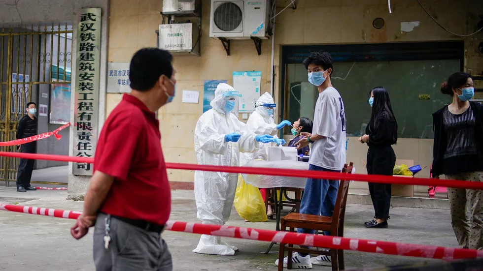Nhân viên y tế xét nghiệm COVID-19 cho dân Vũ Hán. Ảnh: Aly Song/REUTERS