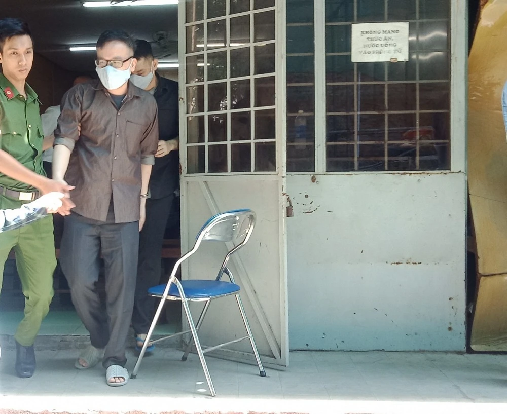 Bị cáo Phúc và Dũng sau phiên xét xử. Ảnh: NAM AN.