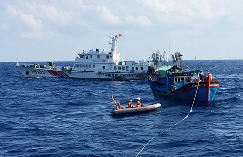+ Đầu tiên, khi gặp sự cản trở của TQ, lực lượng chức năng VN sẽ sử dụng các phương tiện trên tàu như loa trao đổi trực tiếp với tàu TQ với ba thứ tiếng (VN, TQ và tiếng Anh) về nội dung chúng ta phát đi: “Chúng tôi là tàu cứu nạn VN đang thực hiện hoạt động cứu hộ ngư dân trên vùng biển của mình và yêu cầu phía TQ không cản trở tàu cứu nạn của VN”. Đồng thời, lực lượng chức năng tiếp cận tàu bị nạn và phối hợp với các lực lượng khác để trao đổi với phía TQ, như thông qua hoạt động đường dây nóng giữa hai nước đã thiết lập. Tiếp đó thông qua đường ngoại giao hoặc các kênh mà MRCC đang duy trì. Ví dụ như các kênh trao đổi giữa cứu nạn VN và TQ, Cục Kiểm ngư... với những nội dung trao đổi tương tự.