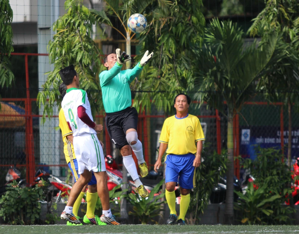 Thủ môn Văn Thịnh U-70, từng khoác áo Sở Công nghiệp, vẫn còn bay nhảy như chim trong cầu môn với lứa cầu thủ đàn em, đàn cháu.