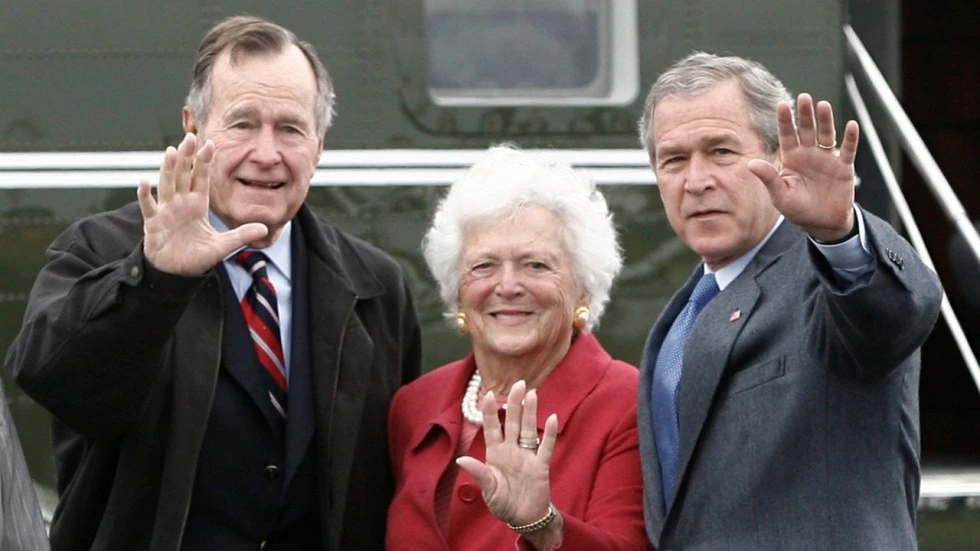 Cựu Tổng thống George W. Bush (phải) cùng cha mẹ, cựu Tổng thống George Bush và cựu đệ nhất phu nhân Barbara Bush, vào ngày 8-4-2007. Ảnh: SCMP
