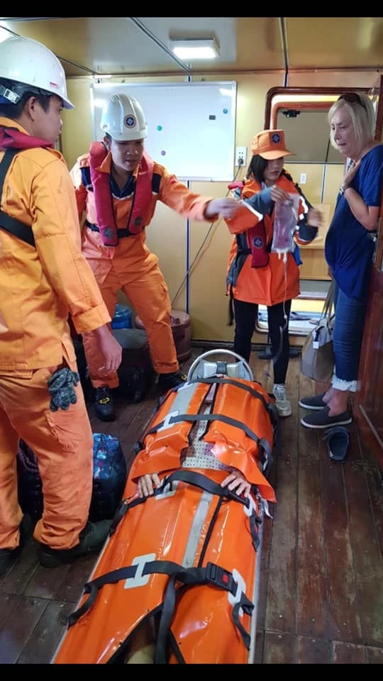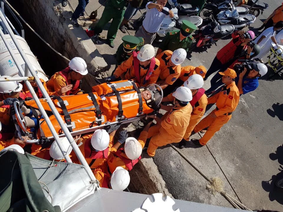 Dưới đây là chùm ảnh tiếp cận bệnh nhân đưa về đất liền cấp cứu:
