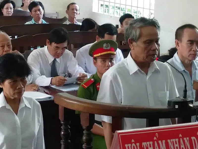 Bị cáo Trần Cảnh Lạc, nguyên tổng giám đốc Công ty Mía đường Tây Ninh (giữa) tại tòa. Ảnh: HY