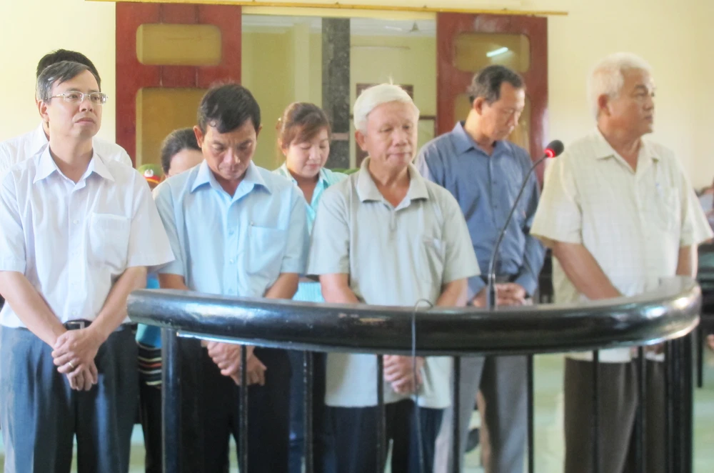 Tám bị cáo nghe đại diện VKS luận tội. Ảnh: TẤN LỘC