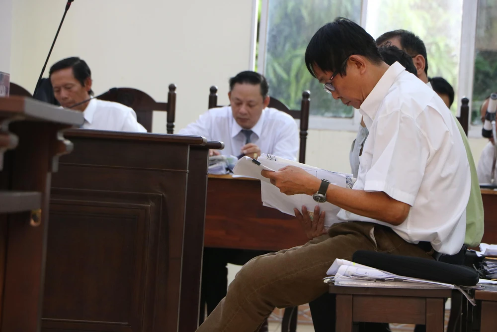 Các bị cáo nghiên cứu tài liệu tự bào chữa cho mình.