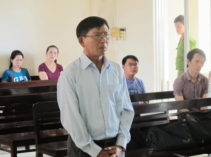 Bị đơn- cựu hiệu trưởng Nguyễn Tấn Hào phản bác lại các ý kiến của nguyên đơn. Ảnh: TẤN LỘC