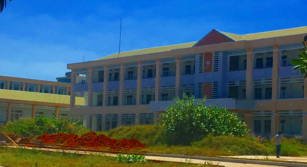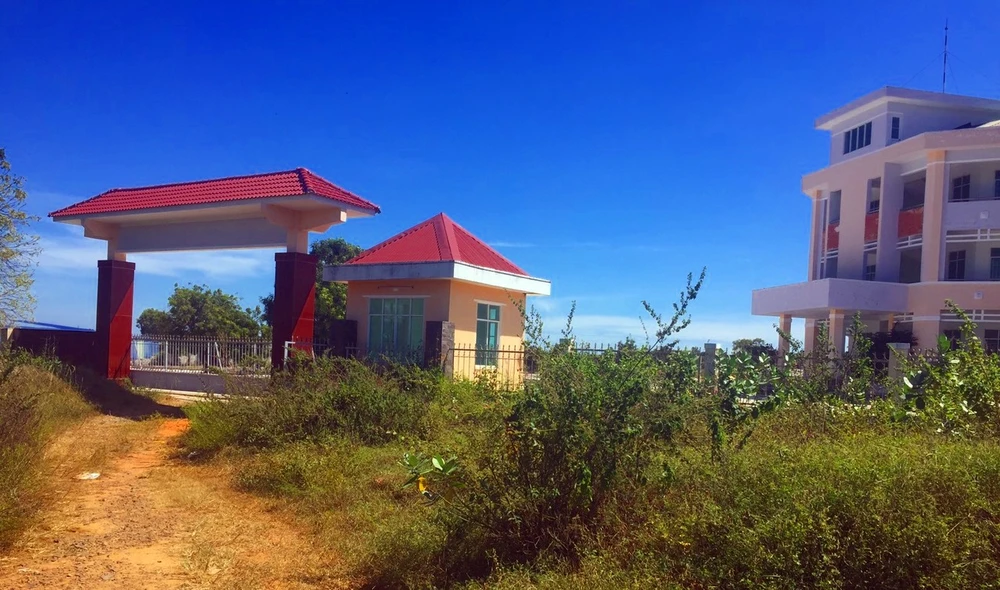 Nhiều hạng mục của Trường Trung cấp nghề Kinh tế-Kỹ thuật Công đoàn Bình Thuận đã xây xong mọc cỏ um tùm. Ảnh: PN