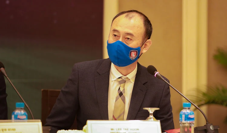 HLV Lee Tae-hoon trong buổi ra mắt tân Tổng quản CLB quân đội Tiffy của Campuchia. Ảnh: Khmer Times