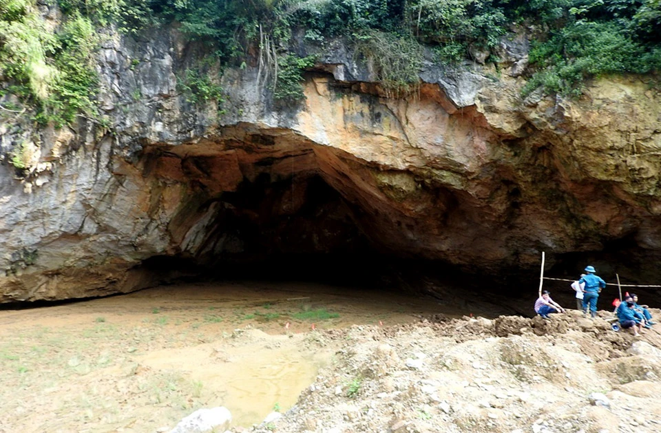 Lượng bùn đất đổ vào bên trong gần như lấp cả cửa hang cột cờ.