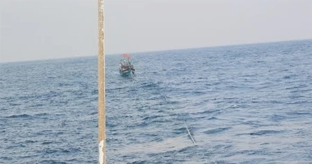 Tàu cá được lai dắt vào bờ. Ảnh: Trung tâm II cung cấp