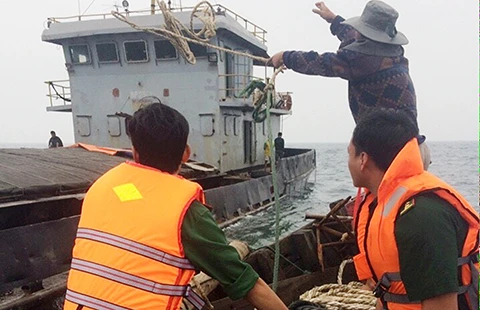 Đồn biên phòng Cồn Cỏ cứu hộ thành công tàu chở xi măng gặp sự cố khiến nước tràn. Ảnh: TTXVN
