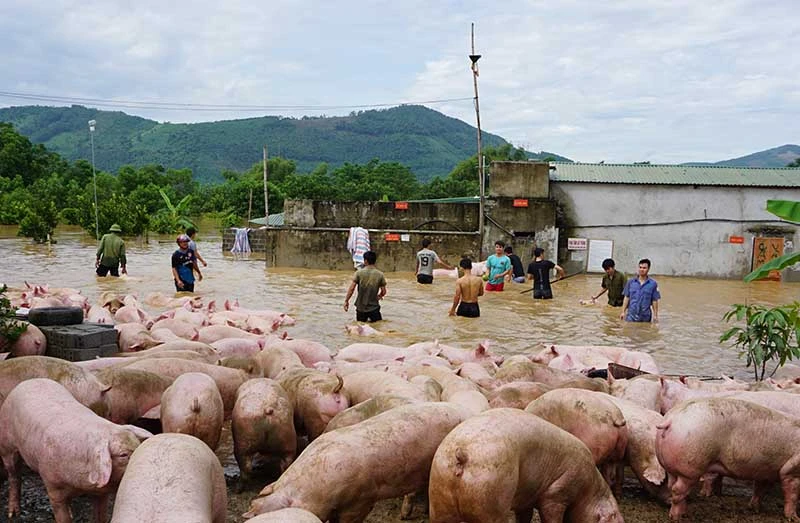 “Lũ đến sớm, nước dâng nhanh bất thường, gia đình tôi cũng không chuẩn bị kịp để đưa đàn heo đến nơi an toàn, cũng may có người dân đến cứu giúp, không thì đã bị lũ cuốn trôi. Đến sáng nay (1-9), gia đình tôi đã chuyển toàn bộ số heo đến nơi an toàn” - ông Lam cho biết.