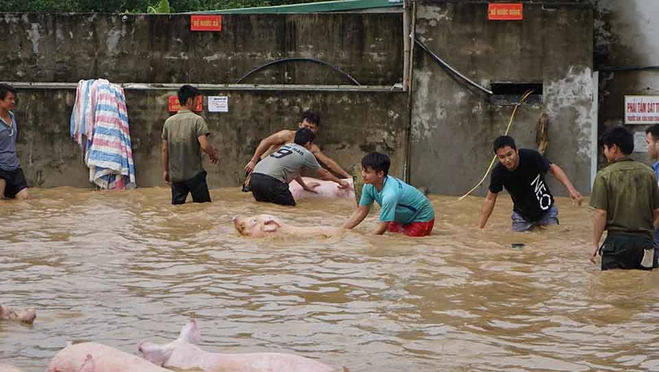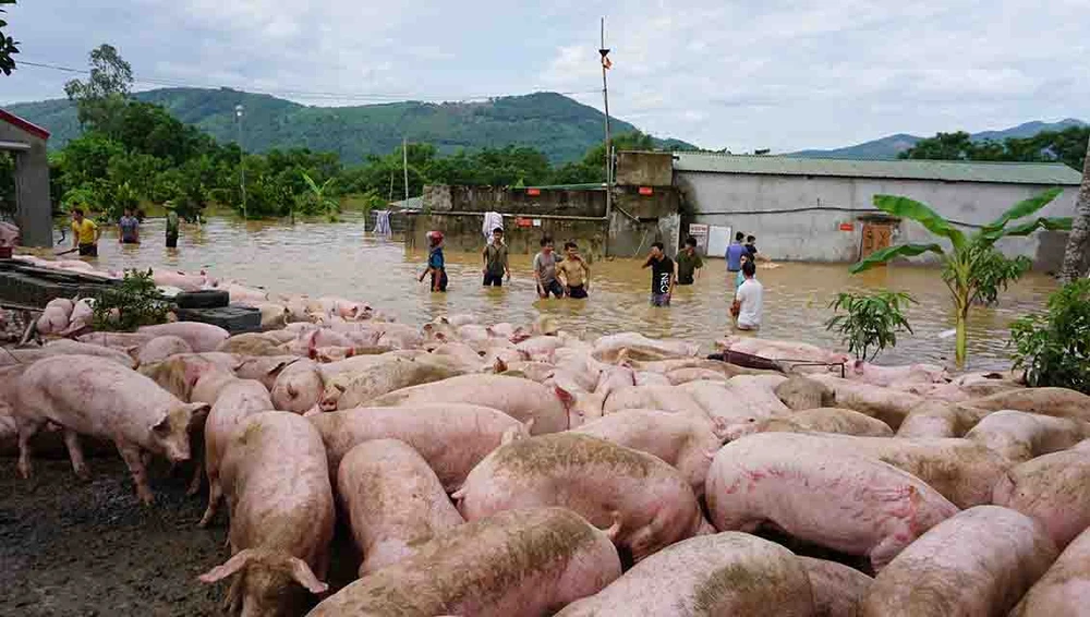 Sáng nay (1-9), ông Dương Khắc Lam (ở thôn 3, Cẩm Ngọc, Cẩm Thủy, Thanh Hóa) cho biết đã cứu toàn bộ số heo hơn 1.000 con sau khi nước lũ sông Mã dâng cao nhanh khiến trang trại heo của ông buộc phải sơ tán bắt đầu từ ngày 31-8.