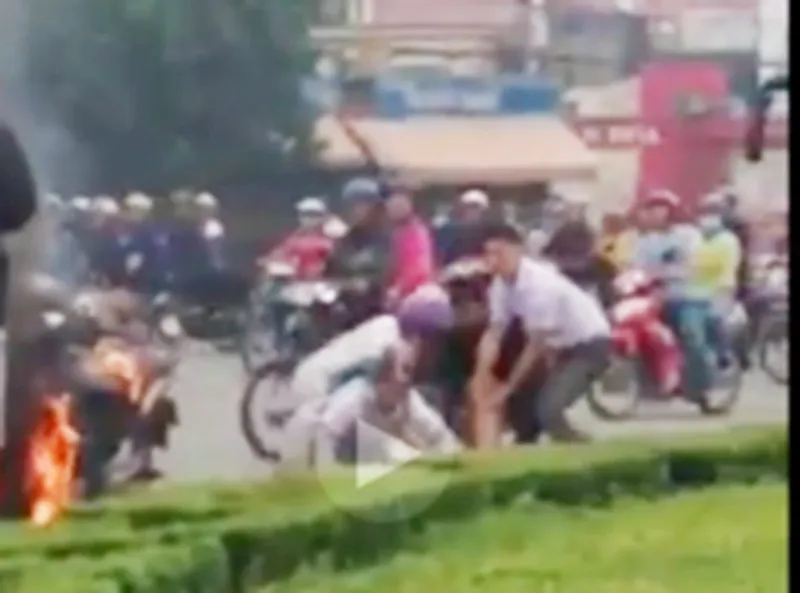 Theo thông tin ban đầu, thời điểm trên, nhiều người hốt hoảng khi nhìn thấy một thanh niên bất ngờ dùng một can xăng đổ lên xe máy bên lề đường rồi châm lửa đốt. Mọi người chưa ai kịp phản ứng thì thanh niên này lại tiếp tục đổ xăng lên người mình rồi lao vào chiếc xe đang bốc cháy.