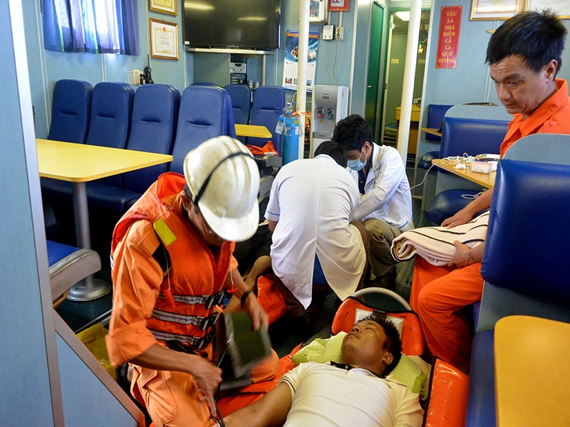 Các bác sỹ và nhân viên cứu nạn nhanh chóng triển khai cấp cứu, đưa các nạn nhân về đất liền. Hiện sức khoẻ các ngư dân đã ổn định.
