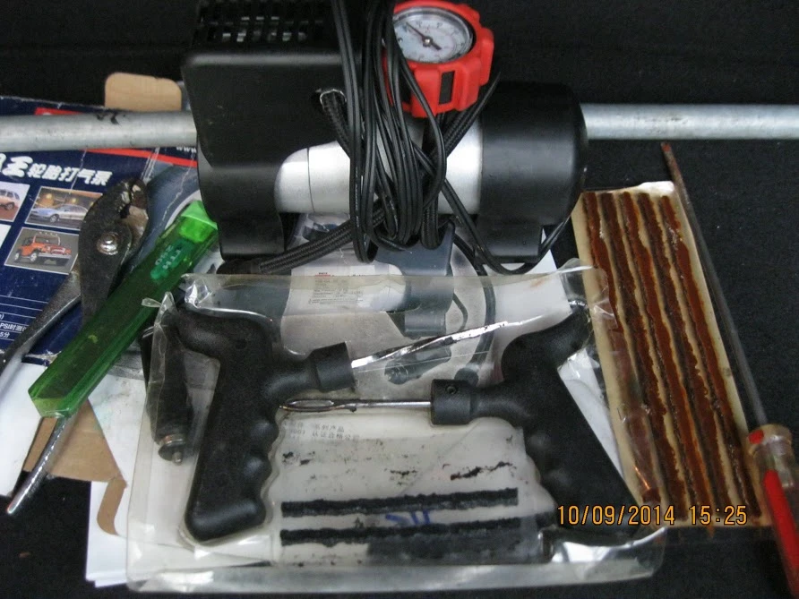 Bộ vá lốp và bơm điện là những phụ kiện không thể thiếu của các bác tài