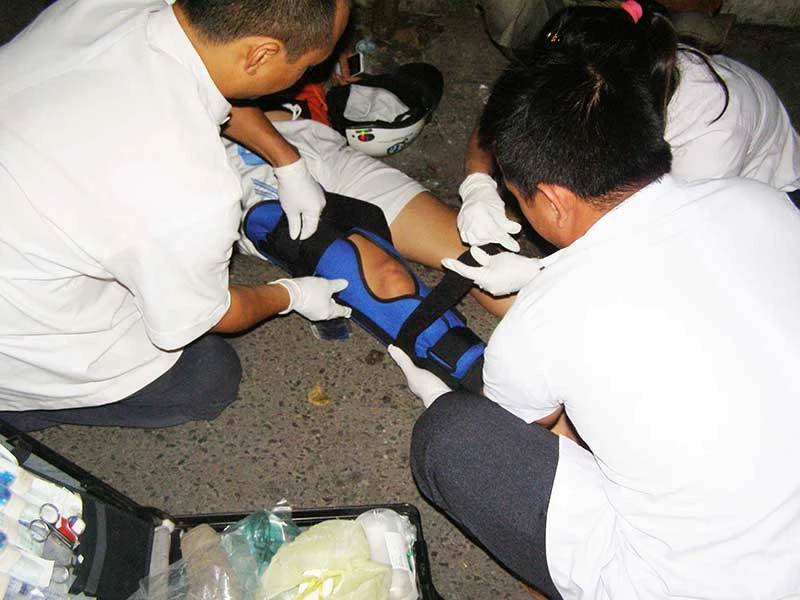 Nhân viên cấp cứu 115 đến hiện trường kịp thời để sơ cứu nạn nhân. Ảnh: TRẦN NGỌC