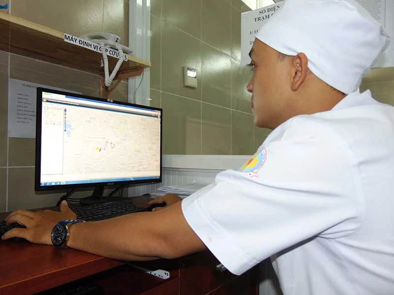 Hệ thống định vị giúp nhân viên trực cấp cứu BV quận Thủ Đức điều xe gần nhất đến hiện trường. Ảnh: TRẦN NGỌC