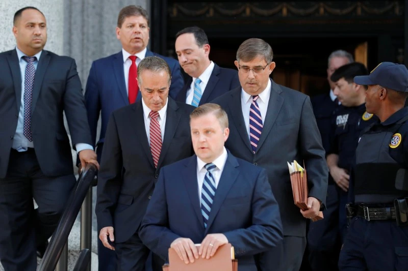 Cựu nghị sĩ Mỹ Chris Collins rời khỏi Tòa án Liên bang Mỹ ở Manhattan ngày 1-10-2019, sau khi thừa nhận tham gia một vụ giao dịch nội gián. Ảnh: REUTERS