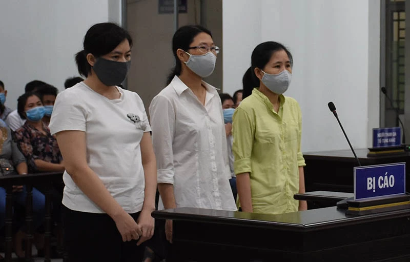 Từ trái qua: Lưu Thị Thanh Linh, Trần Thị Hằng, Lê Thị Thu Uyên nghe tòa tuyên án - Ảnh: QUYỀN KHANH