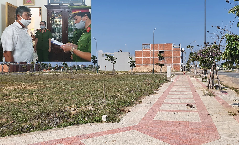 Ông Nguyễn Chí Hiến, cựu phó chủ tịch thường trực UBND tỉnh Phú Yên, nghe lệnh bắt tạm giam (ảnh nhỏ) và một góc khu đất 262 lô bán sỉ. Ảnh: TẤN LỘC