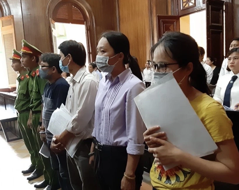 Các bị cáo nghe VKS nêu quan điểm. Ảnh: H.Y