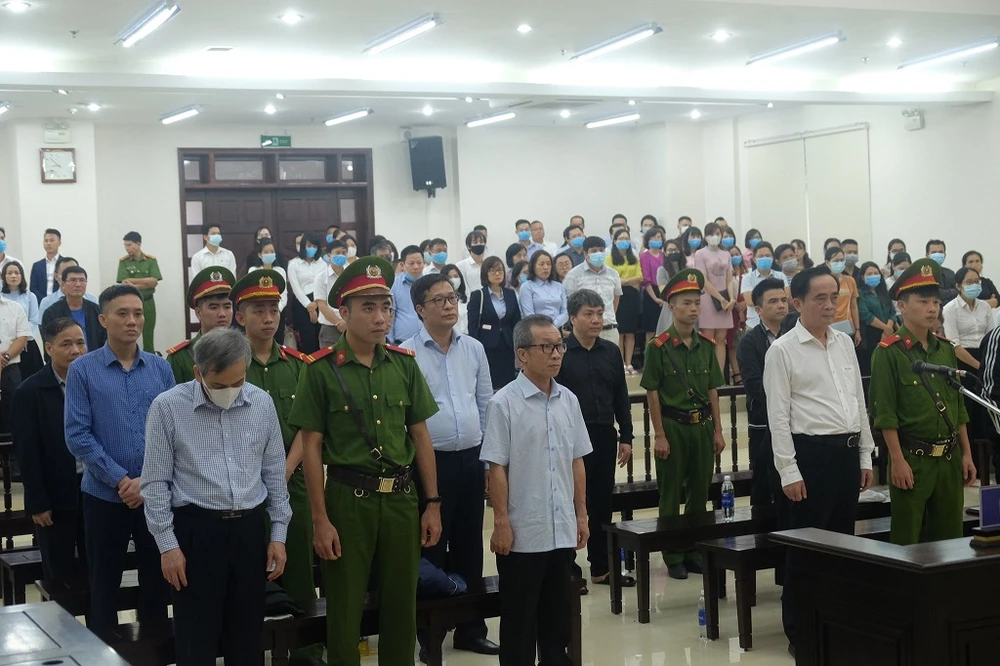 Các bị cáo nghe tòa tuyên án. Ảnh: TP