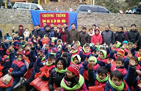 Chị Vương Hà (Hà Nội) cũng vừa trở về từ một chuyến đi từ thiện trao áo ấm cho các em học sinh nghèo. Chị cho hay nhóm của chị, trong đó có đạo diễn Đặng Thái Huyền, nhà sản xuất Thanh Tùng vừa trao tặng 52 cái áo ấm cho học sinh ở Mường Khương (Lào Cai).