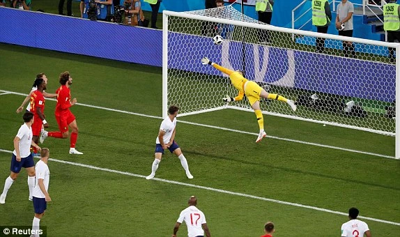 Phút 51, cựu sao trẻ của MU, Adnan Januzaj đi bóng rất hay bên cánh phải xâm nhập vòng cấm Anh rồi tung ra cú sút rất căng tung lưới thủ thành Pickford mở tỉ số 1-0 cho Bỉ.