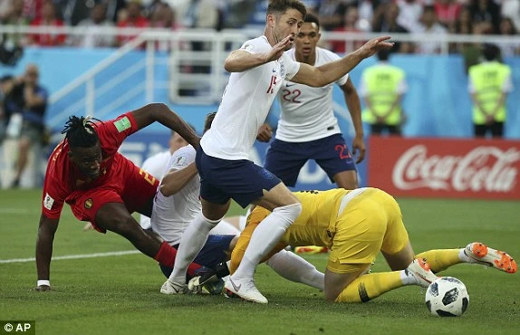 Bỉ có ít nhất hai cơ hội rõ ràng để mở tỉ số, đó là cú sút xa cực căng của Tielemans nhưng bị thủ thành Pickford xuất thần bay người cản phá, đó là pha lộn xộn trước khung thành Pickford nhưng cuối cùng Cahill kịp lùi về phá ngay trên vạch vôi khi bóng đang từ từ lăn vào lưới và đó là cú sút của Fellaini bị hậu vệ Anh chặn đứng trước khi Pickford kịp nhoài người cản phá.