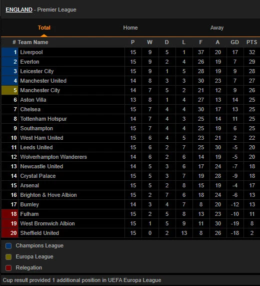 Hòa đầy tiếc nuối, Liverpool cũng bỏ lỡ cơ hội sớm kết thúc năm 2020 với ngôi đầu bảng Premier League. Liverpool vẫn dẫn đầu bảng với 32 điểm, CLB cùng TP Everton đứng thứ hai kém 3 điểm.