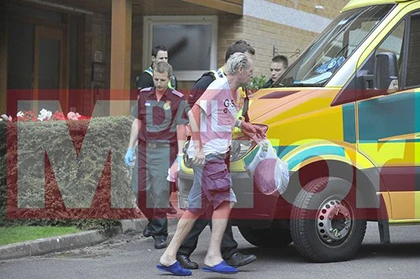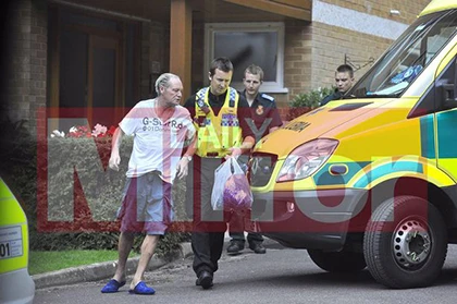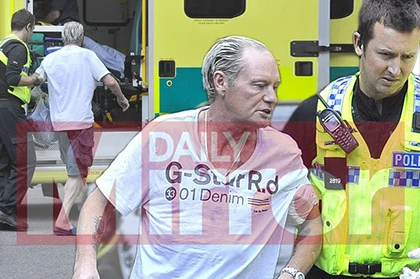 Gascoigne được các nhân viên y tế dìu lên xe để đến bệnh viện điều trị chứng nghiện rượu.