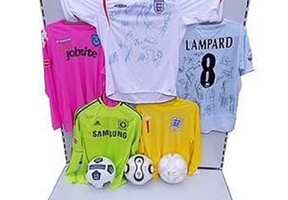 Một bức ảnh của một số mặt hàng có sẵn trên trang hilcoind.com.uk cho thấy chiếc áo sơ mi số 8 của Lampard và Gerrard có chữ ký của nhiều cầu thủ khác nhau cũng được đem đấu giá.