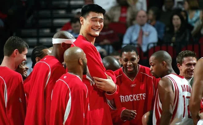 Yao Ming (giữa) trong những năm tháng thi đấu bóng rổ nhà nghề ở Mỹ. Ảnh: Getty