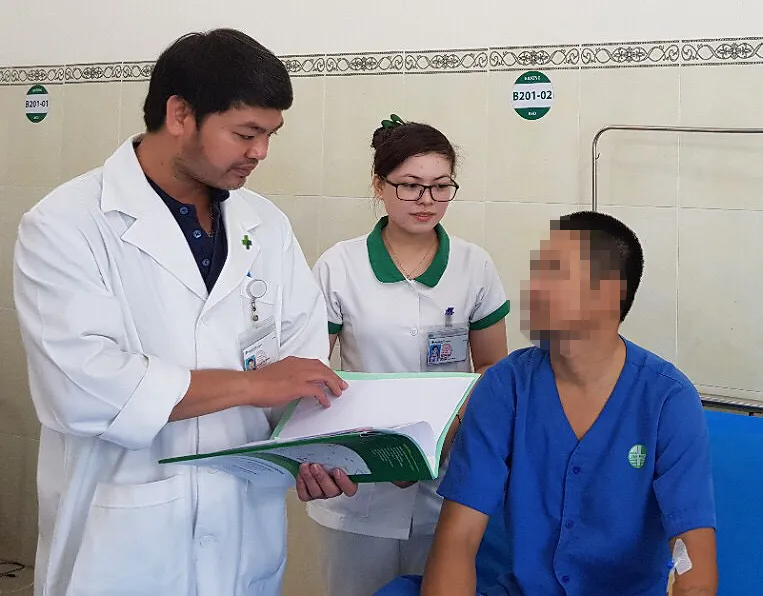 Bác sĩ đang thăm khám sức khỏe anh H. sau phẫu thuật. Ảnh: CTV