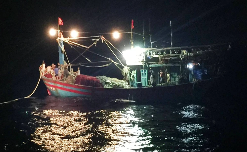 Con tàu NA 93362 TS chở 17 ngư dân bị nạn trên biển.