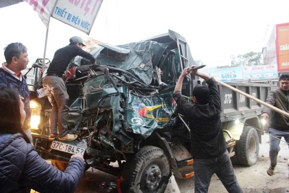 Sáng 26-2, chiếc xe tải mang BKS 37C-184.52 chở đầy táp lô chạy trên quốc lộ 1A (đoạn qua khối 6, thị trấn Cầu Giát, huyện Quỳnh Lưu, Nghệ An) thì bị xe tải BKS 51C-780.95 chạy cùng chiều, tông vào sau xe.