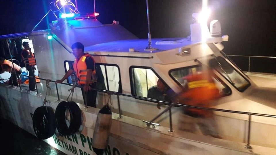 Sau 30 phút các cán bộ bộ đội biên phòng đã tìm, tiếp cận được bảy người bị lật xuồng đang bơi lênh đênh trên biển. Cả bảy người được vớt lên xuồng lớn của biên phòng đưa vào bờ an toàn. Chiếc xuồng cao su cũng được kéo vào đất liền.