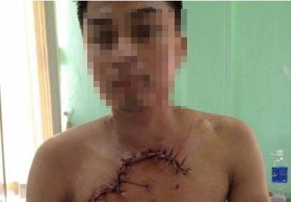 BS Ngô Gia Khánh, khoa Tim mạch và lồng ngực, BV Việt Đức, cho biết bệnh nhân nhập viện trong tình trạng sốc nặng, mạch huyết áp khó đo, kích thích vật vã, nghiêm trọng nhất là vết thương ngực rất rộng mất toàn bộ thành ngực trước, lộ tim phổi ra ngoài qua vết thương.