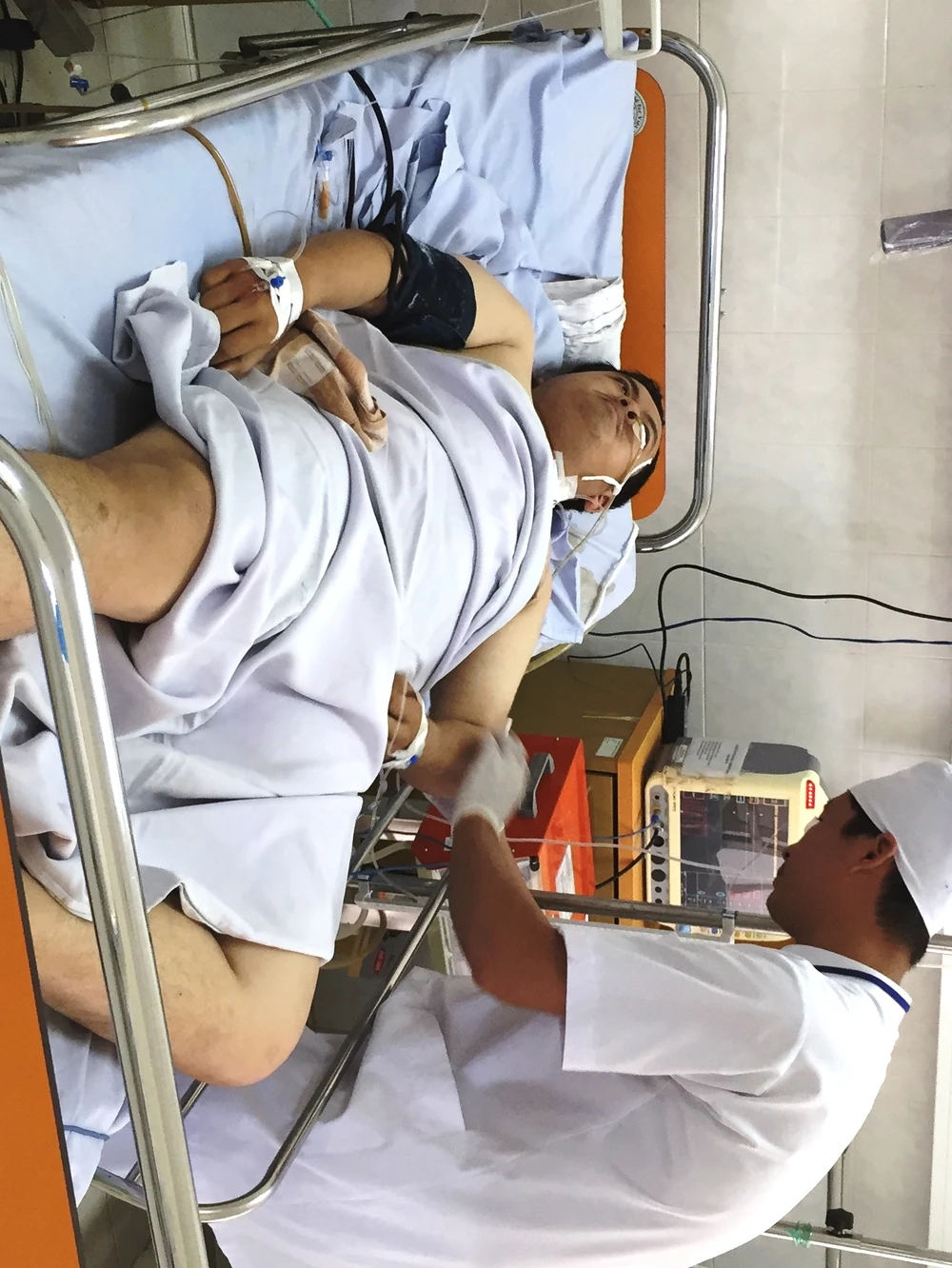 Theo Bác sĩ Nguyễn Hồng Quang, Giám đốc Bệnh viện Đa khoa khu vực Cam Ranh, Khoa cấp cứu của bệnh viện tiếp nhận anh D. trong tình trạng nguy kịch, ổ bụng tụ 1.100ml máu.