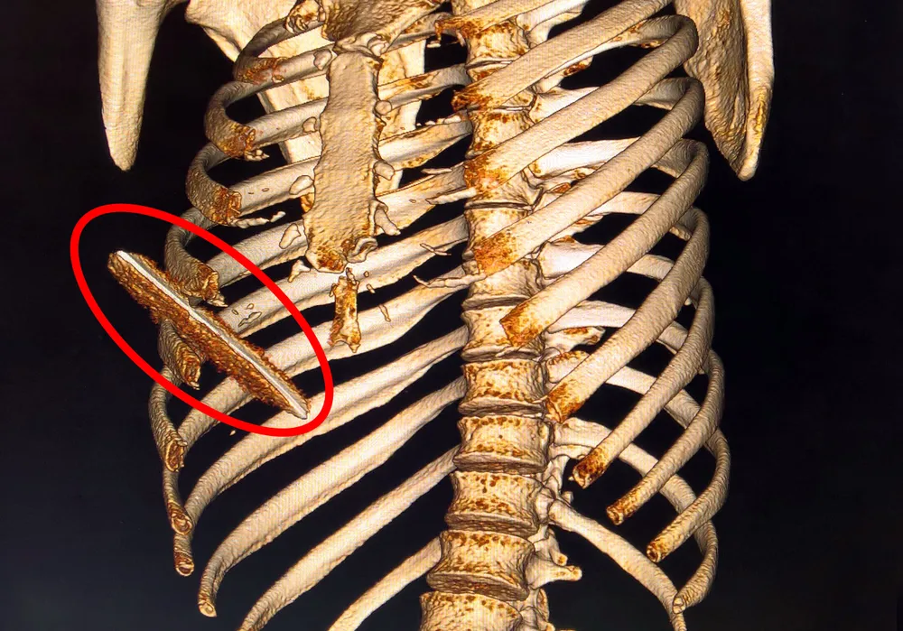 Bệnh viện nhanh chóng kích hoạt quy trình báo động đỏ nội viện, dự trù máu và chuẩn bị phòng phẫu thuật cấp cứu. Bên cạnh đó, bệnh nhân được thực hiện các xét nghiệm cần thiết. Kết quả chụp CT 160 lát cho thấy bệnh nhân bị thủng rách gan, tràn dịch màng phổi và xuất huyết nội lượng nhiều. Ngoài ra, cung xương sườn số 5 và 6 của bệnh nhân còn bị gãy nứt do lưỡi dao đâm vào.